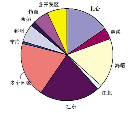 这些总部企业从区域分布看,主要集中在中心城区,其中江东区27家、海曙区22家、鄞州区8家、北仑区20家、镇海区7家,在宁波两个及以上区域设立分支机构的有25家。