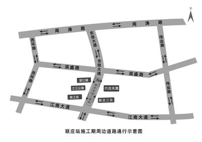 受它的影响,施工期间,东信大道(江南大道至滨盛路段)禁止大型车辆通行,双向4车道改为双向2车道,且仅供周边居民及单位机动车通行。需要通过该区段的大型车辆和非周边小区的小型车辆可通过滨盛路、伟业路、西环路、江南大道等绕行。