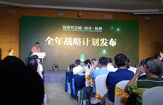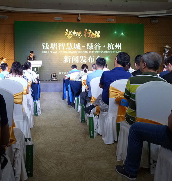 钱塘智慧城是杭州市“两区三城九镇三谷”的重要布局之一,是杭州继未来科技城、青山湖科技城之外重点打造的第三座“城”,涵盖九堡街道、江干区科技经济园及杭州国际商贸城江干区辖区,面积15.3平方公里。智慧城坐拥杭州东部门户之地,将以主城区优势,以“五业五区一中心”为目标,打造国内一流现代化魅力之城、智慧之城,与未来科技城形成东西两翼齐飞的发展格局。绿谷·杭州作为政府主导的项目,定位为城东产业创新引擎,将发挥产业带动作用,打造研发创意中心和科技总部基地,开篇杭州东部的智慧创新运动。因此绿谷·杭州并非是传统意义上的商务办公地点,而是一个巨大的智慧产业平台。此次绿谷·杭州东部创新中心新闻发布会也标志着杭州东部创新时代的正式开启。发布会现场,吸引了二十余家主流媒体的关注。