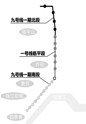 事实上,现在地铁1号线客运中心站到临平站的这一段,就是将来的9号线。等9号线开通后,这段线路也将回归9号线。因为已经有一段在运营的线路,9号线一期被分成南北两段施工——