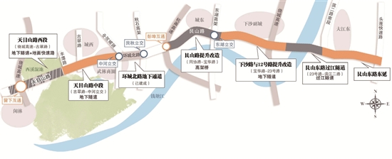 钱塘快速路是杭州市“四纵五横”快速路网系统中位于城市最中心的“一横”,计划亚运会前全线建成。