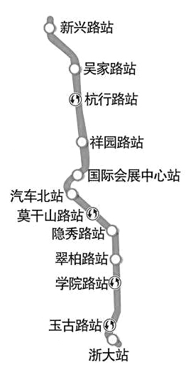杭州地铁10号线一期工程起点为浙大站,沿玉古路、学院路、余杭塘河边、莫干山路、石祥路、杭行路、港虹西路敷设,终止于新兴路站。线路全长15.24公里,全部是地下线,设置站点13座。